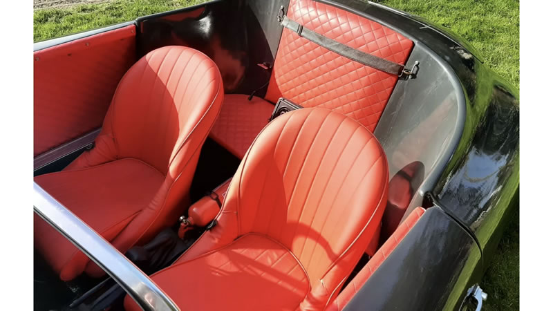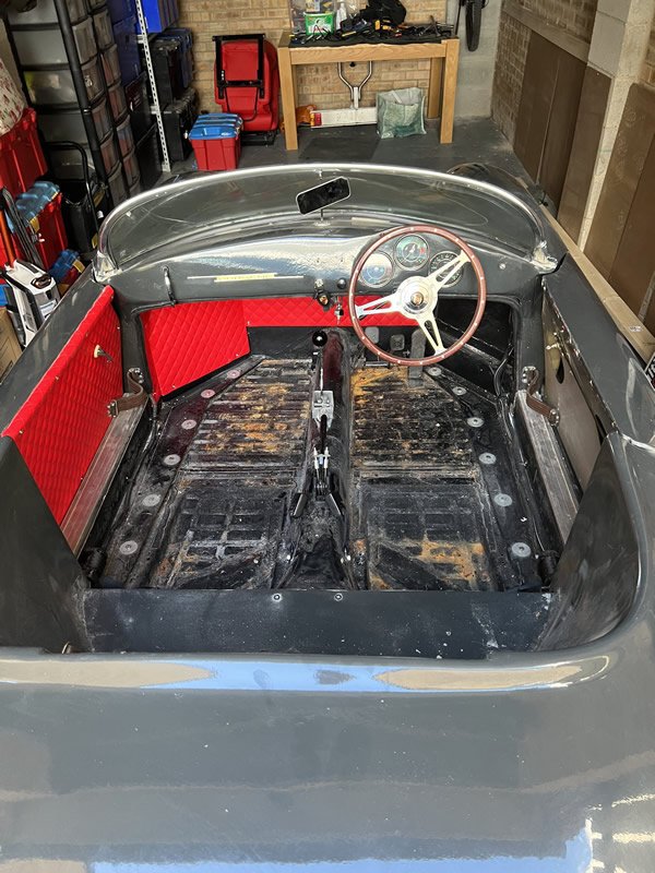 June 2022 - Stripping out the old red interior and putting in new seats and carpet. Bumpers and windscreen now in place as well